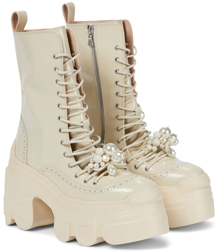 This year saw a movement on the runways to celebrate the 1990's. The combat boots of the grunge era have been reborn, but with designer flare. The f/w 2021 runways had a surplus of combat boots and not all army surplus. Combat boots in an array of colors and varying designs are What's Hot! From the ultra-feminine combats from Simone Rocha to the impactful colors of Coach, combat boots are for more than muddy battles.