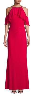Goen J - Cape-Back Ruffled Crepe Gown - Red