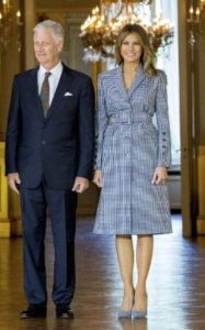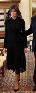 In Brussels the First Lady wore clothes made by a Belgian designer Maison Ullens and by Michael Kors for her visit with the Belgian king and queen, while in Italy (both Rome and Sicily) she opted for Dolce & Gabbana. For her meeting with Pope Francis, Mrs Trump decided to respect the traditional custom of wearing a conservative black dress and a black lace veil both by Dolce & Gabbana.