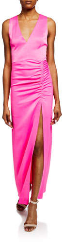 Alice + Olivia Diana Racerback V-Neck High-Slit Column Gown