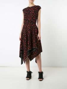 Designed with a statement print, this contemporary day dress from Proenza Schouler is set in black with distinctive red details. Therefore complete with a crew neck, cap sleeves and an asymmetric hem, this Proenza Schouler piece easily adapts for both day and night.