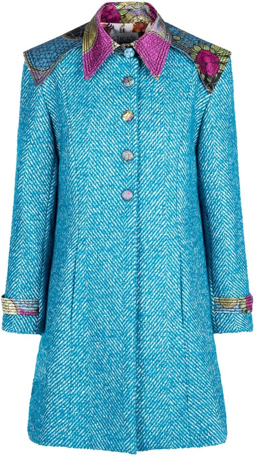 Nancy's fabulous coat is a nod to a classic car coat. A typical car coat is thigh-length with a straight collar. On this coat the button front is slightly off-center, adding uniqueness. Certainly, when you invest in a coat, choosing a classic will serve you well. The coat here is in a bright peacock blue, I suggest choosing a coat in your favorite color. Frequently one selects a coat in a dark color, however, a signature color will further your style. I have picked a variety of car coats to give options.