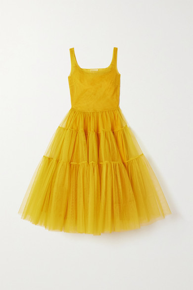 One daring designer that always excites me is Molly Goddard (see my last post). My delight with her S/S 2021 is exemplified by her ability to never sacrifice her exuberance while giving us a more utilitarian collection. While Goddard creates the most exciting tulle party dresses, she has adapted her exotic nature to give us a more practical collection. Ruffled day dresses, tulle skirts, and even jeans give us a look into a world where you work from home. Her cheerful palette has zest and is hopeful. A collaboration with Uggs, marries their chunky shoes with her statement-making dresses giving us our new marching orders.